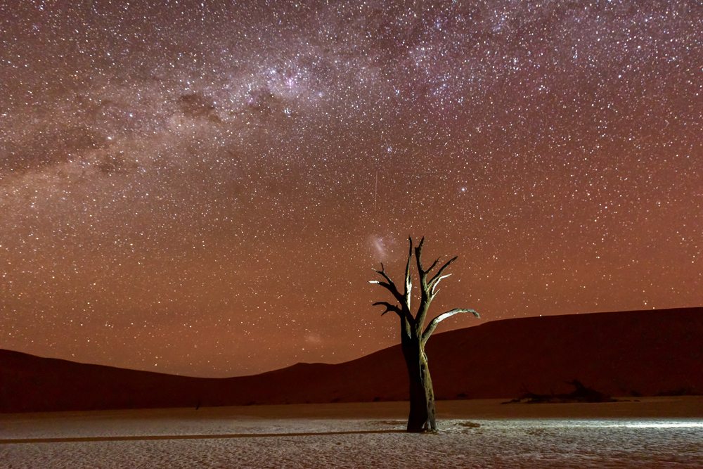 Vous trouverez beaucoup de grandes dunes de sable si vous voyagez au Sahara ou au Wadi Rum en Jordanie, mais les dunes de sable du Namib en Namibie sont uniques dans leur attrait visuel. D’abord, ce sont les plus grandes dunes de sable du monde. Big Daddy, surplombant Dead Vlei, mesure 325m de haut ! Vous aurez du mal à placer toute la dune dans votre cadre, ce qui signifie que vous pouvez jouer avec l’échelle photographique de façon magique. De plus, Sossusvlei et Dead Vlei font toujours des sujets photographiques incroyables. Les arbres noirs sortis de Dead Vlei sont comme un cimetière forestier ; vous trouverez peu de meilleurs sujets photographiques dans n’importe quel désert du monde.