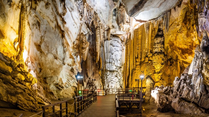 Paradise Cave est un fascinant réseau de grottes situé au cœur d’un parc national et entièrement entouré de pics karstiques et de forêts. Bien que les visiteurs ne puissent voir que le premier kilomètre de ce labyrinthe de 31 kilomètres, une visite à Paradise Cave en vaut vraiment la peine. L’ampleur du complexe est connue pour être stupéfiante et descendre ces escaliers en bois pour observer les formations monstrueuses de stalactites et de stalagmites est l’une des expériences les plus fascinantes que le Viêt Nam ait à offrir.