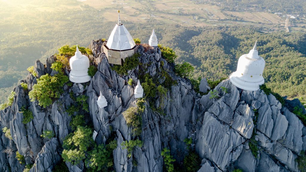 Prenez le train à environ deux heures au sud-est de Chiang Mai et vous arriverez à Lampang, l’une des plus anciennes villes du pays. Lampang remonte au 7e siècle et il n’est pas rare de voir les habitants se déplacer par des moyens traditionnels, tels que des calèches tirées par des chevaux, appelées rot daeng. Il y a plusieurs endroits à explorer en ville, des temples locaux, comme le Wat Phra That Lampang Luang, à la vieille rue piétonne de Talad Gao Road, qui vous fait passer devant de belles maisons et des étals de marché en plein air. Mais sortez de la ville, dans la province de Lampang, pour découvrir l’un des hauts lieux cachés de la Thaïlande. Dirigez-vous vers les collines au nord de la ville pour faire une randonnée à flanc de montagne vers le temple de Wat Chaloem Phra Kiat. La montagne est parsemée de stupas, de sanctuaires et de drapeaux, ce qui a valu à la région le surnom de Petit Bhoutan. Les vues sont spectaculaires.
