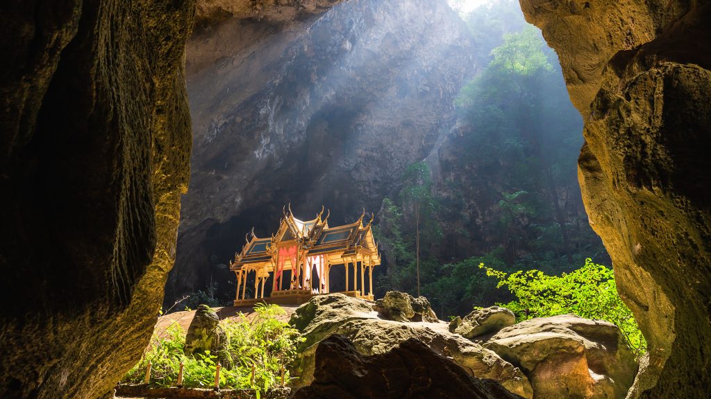 Ce parc côtier, situé à 45 km au sud de Hua Hin, a été le premier parc national marin du pays. Son nom signifie « les trois cents pics », ce qui est tout à fait exact puisque toute la région est couverte de magnifiques flèches de calcaire perçant le ciel. C’est un endroit idéal pour s’évader le temps d’une journée et explorer les plages côtières, les grottes massives et les villages de pêcheurs endormis. Le parc compte 355 espèces d’oiseaux, dont des crabes tachetés et des aigles des steppes, ce qui en fait l’un des meilleurs endroits de Thaïlande pour l’observation des oiseaux, en particulier le long du marais d’eau douce de Thung Sam Roi Yot. Mais la principale attraction est la grotte de Phraya Nakhon, une immense caverne souterraine créée par des dolines et abritant un pavillon royal, qui trône à côté des stalagmites et des stalactites ruisselantes.