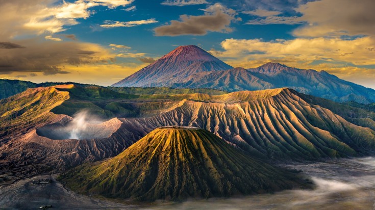 - Mont Bromo, Java Est : Faisant partie du parc national de Bromo Tengger Semeru, le mont Bromo est un célèbre paysage volcanique avec un cratère emblématique et la « mer de sable ». Une randonnée à travers le désert volcanique permet d’admirer les vues époustouflantes du cratère actif du Bromo au lever du soleil.