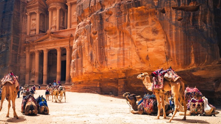 - Petra : Ce site classé au patrimoine mondial de l’UNESCO n’est pas étranger aux trains de chameaux, puisqu’il a été une base importante pour la tribu bédouine pendant des centaines d’années. Drapés dans des tissus tissés à la main, les chameaux de la tribu peuvent être pris en charge à l’extérieur du célèbre bâtiment du Trésor, d’où ils se dirigent vers le Qsar el Bint (le temple de Dushares), explorant les plus belles structures de Petra en cours de route.