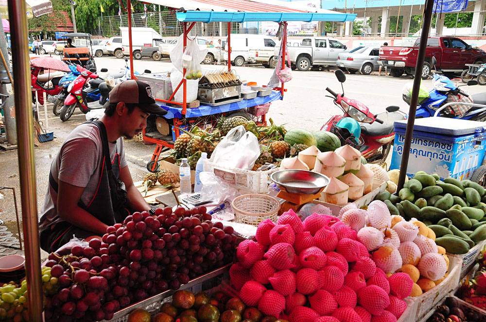 Une promenade dans les marchés alimentaires locaux permet de découvrir les fruits et légumes propres à la région, voire au mois ou à la semaine que vous visitez. Les vers à soie séchés, les fourmis et les grenouilles font partie des délices locaux. Le Thaïlandais moyen ne se rend pas une, mais deux fois par jour au marché, et tout est consommé dans un état aussi frais que possible. Il n’existe pratiquement aucun point de vente de produits occidentaux dans la région, et les repas sont un régal pour les sens.