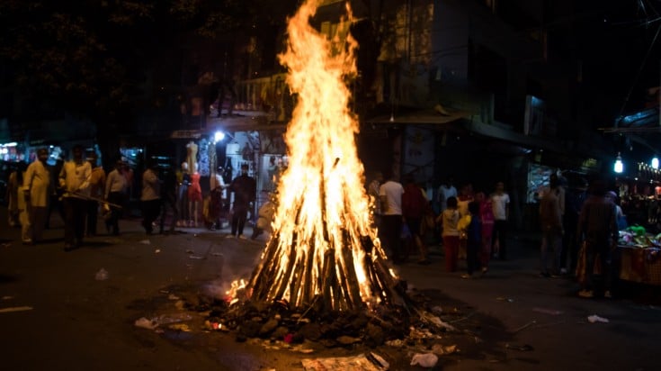 Cependant, son propre fils Prahlada le défia et continua à vénérer le Seigneur Vishnu. Finalement, la tante du garçon, Holika, ayant reçu un don qui l’immunisait contre le feu, a piégé Prahlada pour qu’il la rejoigne sur un bûcher. Cependant, la dévotion de Prahlada le sauva et Holika fut dévorée par les flammes. Le Seigneur Vishnu est alors apparu et a tué le roi démon. Holi célèbre donc la victoire de Prahlada sur son père et sa tante démoniaques et commémore sa dévotion à Vishnu.