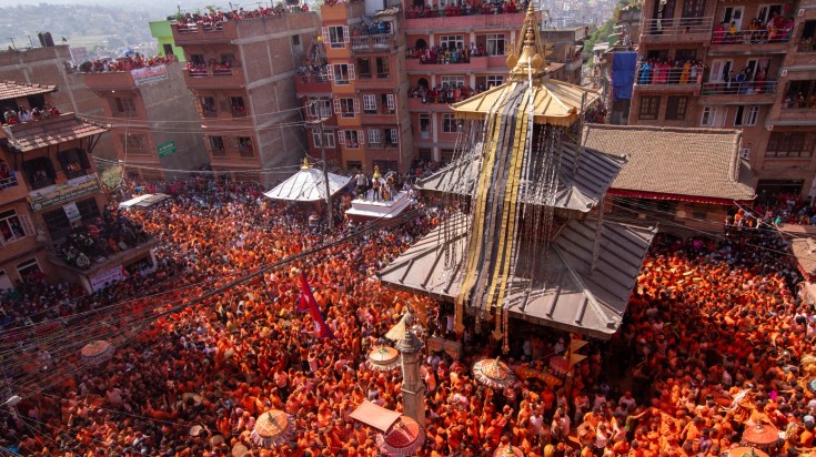- Bisket Jatra : le nouvel an népalais est un festival étonnant qui est une fête pour tous les sens. Bien qu’il soit célébré dans tout le pays, la petite ville de Bhaktapur met les couleurs, la musique et la danse à l’honneur, en faisant circuler un char dans la ville en guise de tête d’affiche.