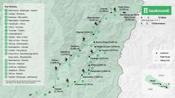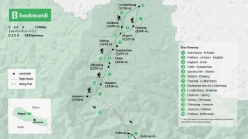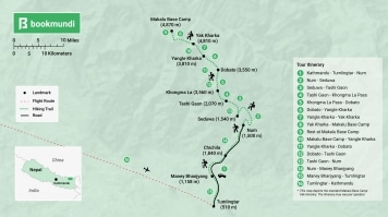 • Il s’agit d’une région très isolée et, par conséquent, vous passerez jusqu’à 4 jours à voyager vers et depuis le trek, avec Katmandou comme point de départ.