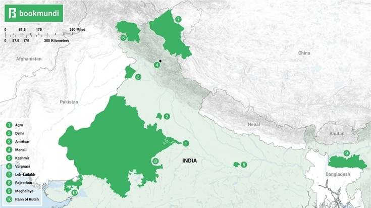 Couvrant une superficie d’environ 1 420 540 kilomètres carrés et une population d’environ 543 millions d’habitants, le nord de l’Inde est un creuset de coutumes, de cuisines, de religions et de traditions aussi diverses que sa topographie – l’Himalaya au nord, le désert de Thar et les plaines indo-gangétiques. Avec ses forêts subtropicales, ses glaciers et ses réserves naturelles, le nord de l’Inde compte parmi les meilleurs endroits à visiter, mais il faut savoir où chercher. Voici dix de nos destinations préférées dans le nord.