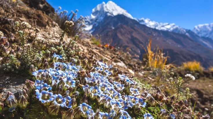 - Floraison printanière : Les vues ne se limitent pas aux sommets lors d’un trekking vers le camp de base de l’Everest en mai. Le long de l’itinéraire, vous pourrez également admirer les généreux cadeaux du printemps : des fleurs de toutes les couleurs, y compris des primevères et des iris, et des oiseaux chanteurs qui s’ajoutent à la mélodie de la nature.